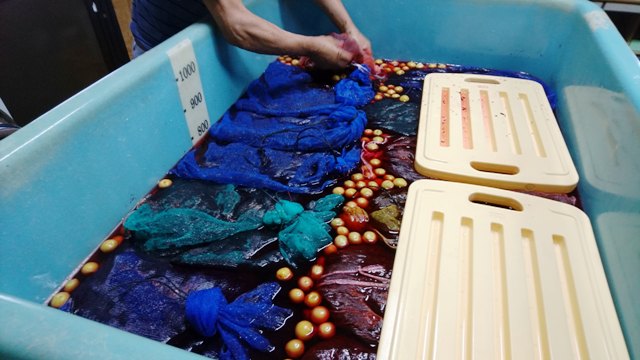 ネットで脱水された紫蘇は、塩漬けになっている桶にゆっくり寝かせ、土用の丑の日をまって、しばし漬け込み